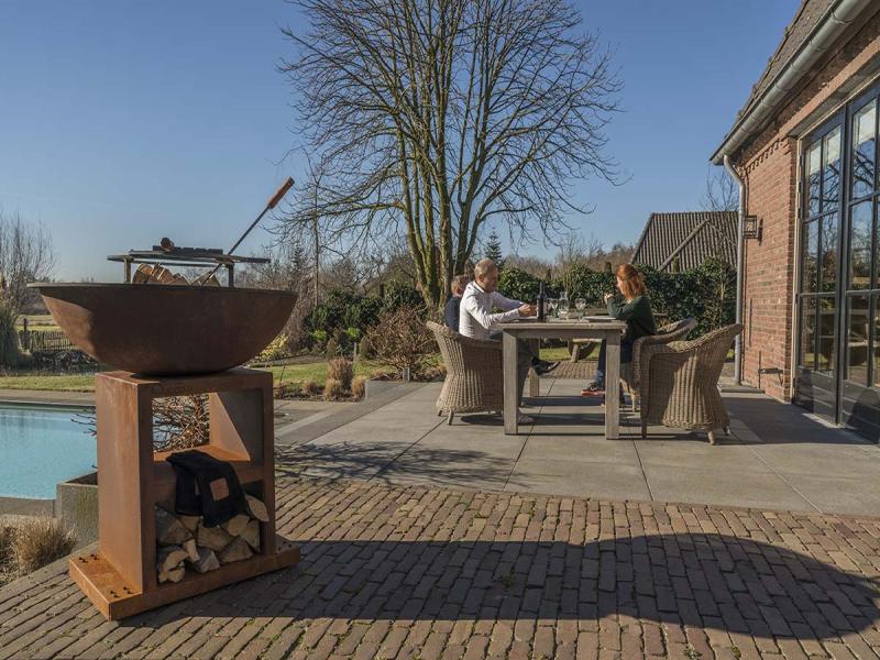 Mögen Sie Kochen im Freien für viele Personen und ist eine gemütliche Atmosphäre ein Muss für einen unvergesslichen Abend? Dann ist die extra large Ausführung des Quoco Piatto genau das Richtige. Sie hat eine Feuerplatte mit einem Durchmesser von nicht weniger als 130 cm. Die große Feuerschale erwärmt den massiven 10 mm starken Grillring, der als Teppanyaki Grill zur Zubereitung von köstlichen Gerichten dient. Der Piatto extra large ist ein hochwertiges Produkt, das nahezu unverwüstbar ist. Neben seiner breiten Anwendbarkeit als Außenküche, Designer-Grill oder Feuerschale ist es auch ein Prunkstück auf der Terrasse oder im Garten. Neben dieser dunkelgrauen Version ist sie auch in Cortenstahl und in zwei kleineren Größen erhältlich. Dank der speziellen Luftzufuhr ist der Quoco schnell einsatzbereit und kann nach Benutzung einfach gereinigt werden. In den Fächern des Unterbaus ist Platz für beispielsweise Holz, Grillbesteck oder ähnliches. Stilvolles Grillen auf einem Designerstück!